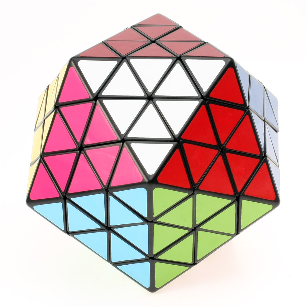 Important Note: Although the corner blocks of these puzzles look like the "trivial" tips of the Pyramix family, the corner blocks of these puzzles should not rotate freely! The reason is because the corner blocks are not theoretically pyramids (like the corners of the Pyraminx family actually are). In other words, the corner blocks should be locked in place and unable to twist (this is analogous to the way that corner-blocks of the Rubik's Cube [family] are held in-place by 3 edge-blocks). However, both the Dogic and Icosaix puzzles allow the corners to rotate... although this breaks geometric theory (for a "regular" puzzle), it makes solving the puzzles easier (and because they are quite complex, this "trick" is greatly appreciated by some players [like me!]).