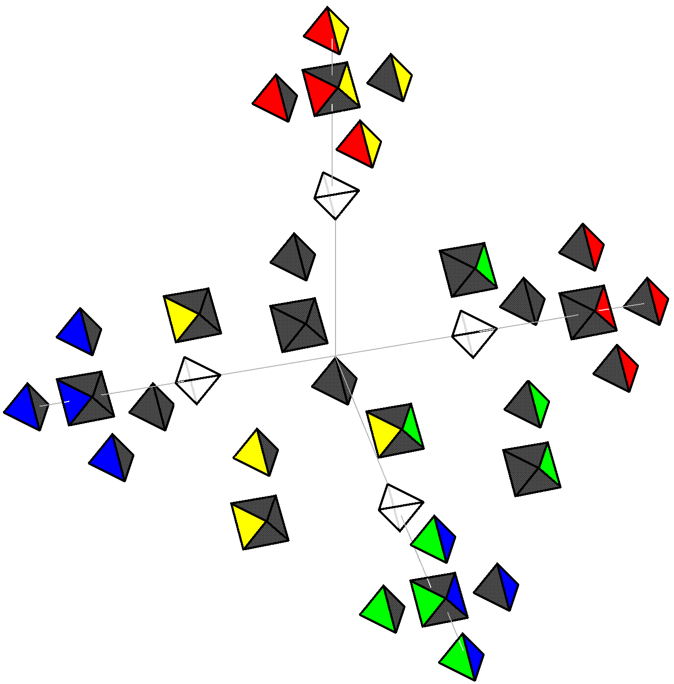 - one (1) octahedron "core" with 4 visible facets and 4 hidden facets